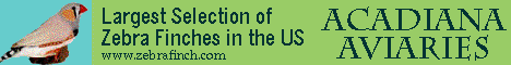 Banner display advertising on Zebrafinch.com This site has been up and running for 20+ years and gets lots of traffic daily. Commercial Sellers of Bird supplies If you are a commercial sell of bird supplies and would like to display your BIRD RELATED website banner on the opening Index page of Zebrafinch.com, you can for $96 for 1 year. Thats just $8 per month. (This is ¢ per day, a very modest fee for guaranteed visibility in the bird breeding community) ALL OTHERS INTERESTED IN LINE TEXT ADS ON THE INDEX PAGE SUCH ADS ARE $40 PER LINK FOR 6 MONTHS OR $70 PER YEAR If interested please contact me below to make arrangements. Garrie Landry