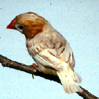 The Phaeo Zebra was the rage of Europe only a few years ago. When the first Phaeo was produced, it was regarded as one of the most outstanding color combinations achievable in zebra finch breeding. These zebras show extensive orange color on a nearly white bird. Contrary to what may believe, the Phaeo is not a distinct mutation but a striking combination of the Black Breasted Zebra and Florida Fancy. This combination shows all the orange features of a Black breasted with no black pigment is present. The best Phaeos have a complete orange head, average ones have extra large cheek patches. They are not easy to breed, and the color is quite variable on males, furthermore well marked Phaeos are not easy to produce. The female Phaeos are similar to Florida Fancy hens but show a rich buff underparts and distince buff colored rump and tail coverts. Phaeos are certainly one of the most colorful of all Zebras, and they are a very important part of the ingredient used in creating an number of other desirable combinations. While this variety may not be difficult to breed, showy specimens are not easily produced.